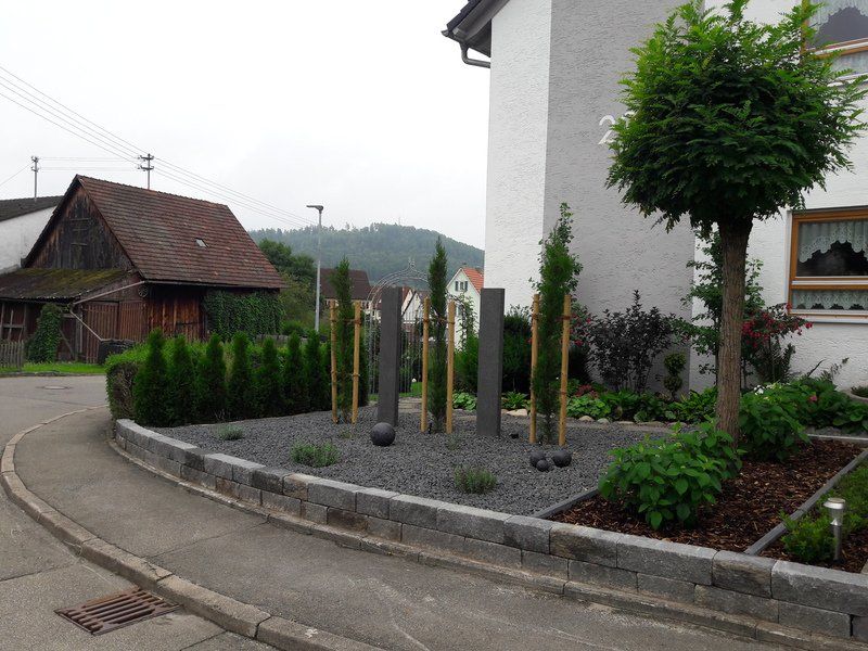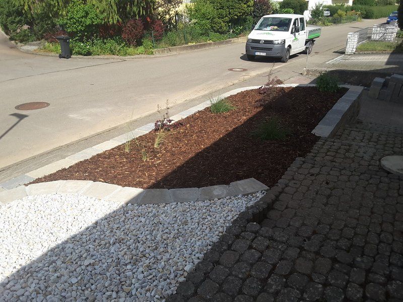 Umgestaltung von zwei Pflanzbeeten und Randeinfassung mit Granitsteinen in Rottenburg