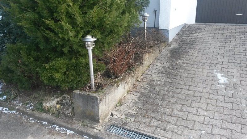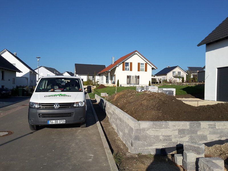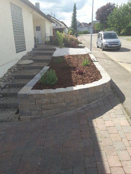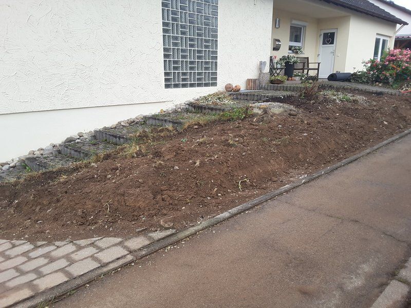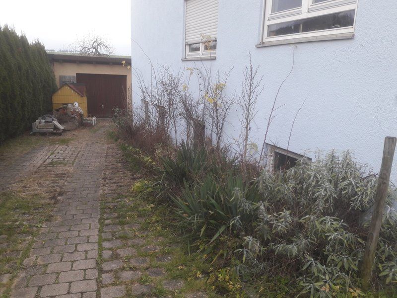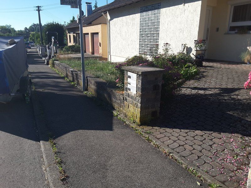 Abbruch einer kleinen, alten Stützmauer, Neugestaltung des Vorgartens in Rottenburg