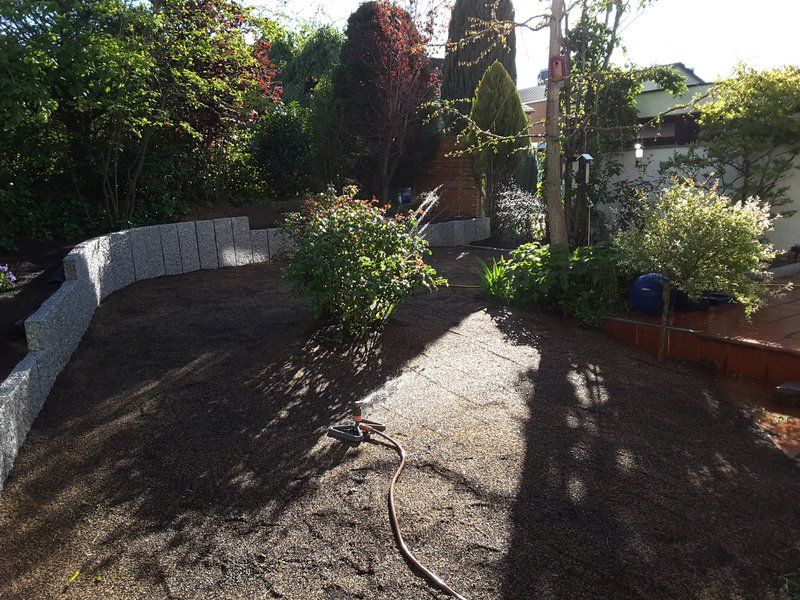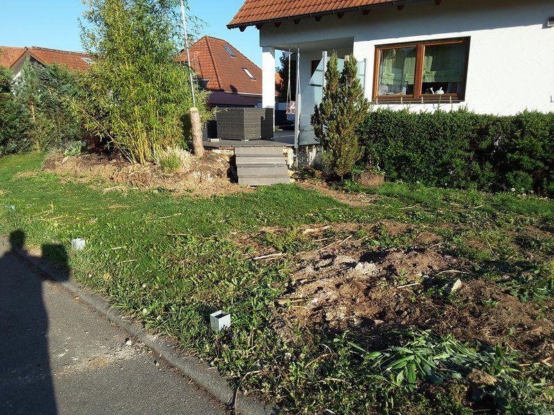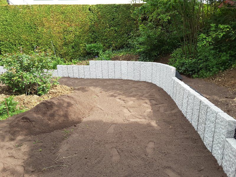 Gartenumgestaltung mit Granitpalisaden und Rasenansaat in Reutlingen