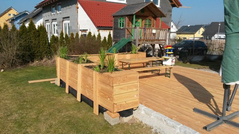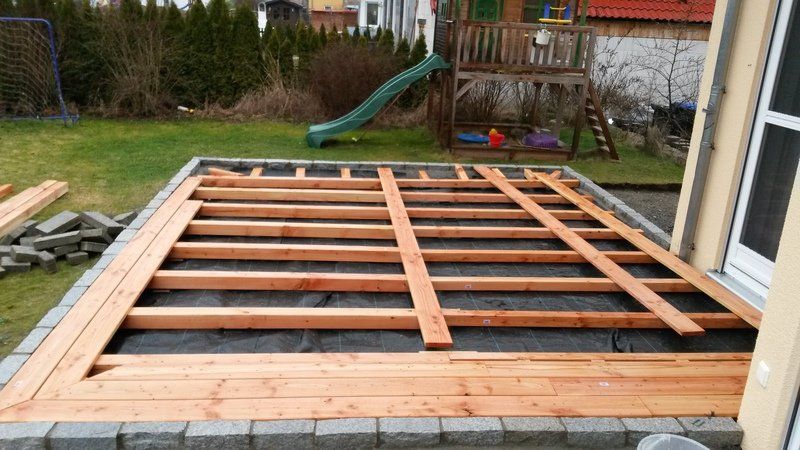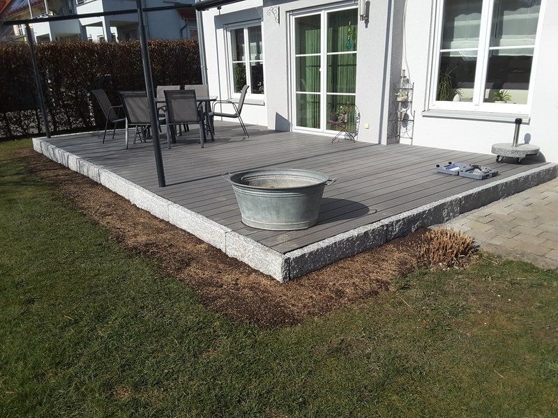 Erstellung einer Terrasse aus Douglasienholz und Umrandung aus Granitsteinen in Rottenburg