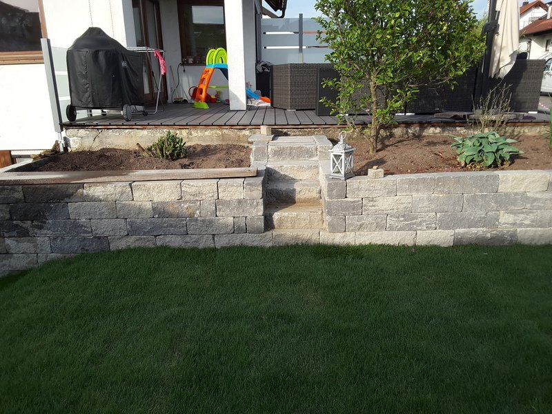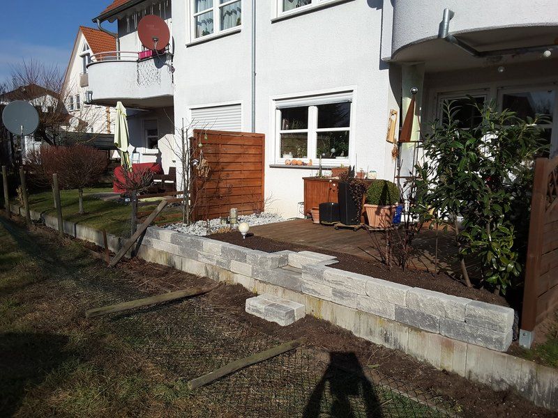 Kleine, zweireihige Stützmauer inklusive Stufenabgang in Rottenburg erstellt