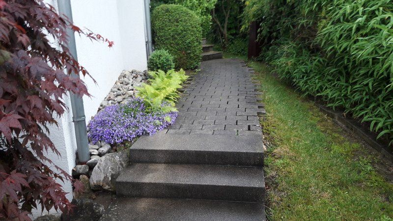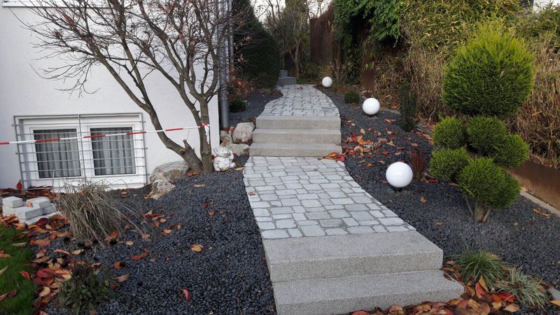 Eingangsbereich in Metzingen neu gestaltet, Blockstufen gereinigt und wieder eingebaut
